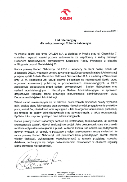 "Sprawna obsługa prawna naszej inwestycji budowlanej. Zespół prawny wykazał się dużym doświadczeniem, wsparciem i elastycznością w działaniu."