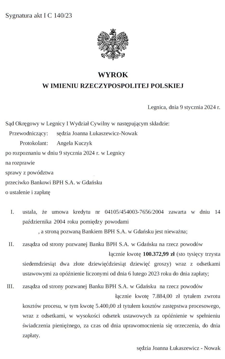 Za każdą sprawą stoją ludzie, którzy odzyskali swoje prawa i pieniądze. Przedstawiamy wybrane sukcesy OWL Kancelaria – unieważnienia umów, zwroty nadpłat, korzystne ugody. Te wyniki to nie przypadek, lecz efekt naszej wiedzy, doświadczenia i determinacji.